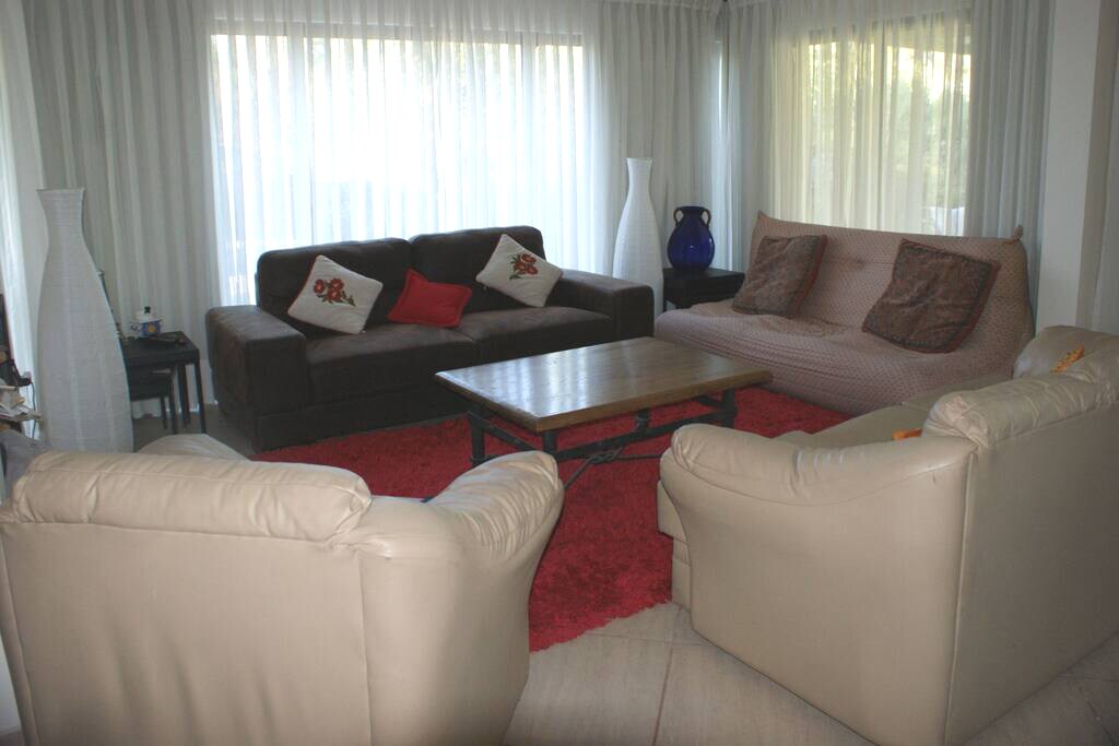 Hiša se nahaja na podeželju (v Nosu) z vsemi potrebščinami, metro do Santiaga v 20 minutah, nakupovalno središče, supermarket, kinodvorane, blizu pomembnih vinogradov za obisk in nacionalnega parka Rio Clarillo (45 minut vožnje z avtomobilom) Hiša ima 2000 metrov zemljišča z bazenom in zelenimi površinami, teraso, pečjo na drva itd. Prijeten družinski dom, ki ga boste morali deliti s hišnimi ljubljenčki (3 majhne pasme), saj smo ljubitelji psov.