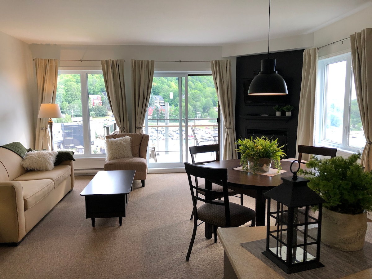 Odkrijte naše stanovanje na smučišču, ki ponuja veliko več kot le osupljiv razgled na goro Bromont! Potopite se v številne celoletne dejavnosti. Uživajte v smučanju, kolesarjenju, vodnih toboganih, pohodništvu, golfu, jahanju in še več! Restavracije, trgovine v bližini. Mirno vzdušje, idealno za počitek po celodnevnih pustolovščinah . Dobrodošli v našem alpskem zatočišču, kjer se pustolovščina sreča z udobjem v toplem okolju v osrčju gore.
