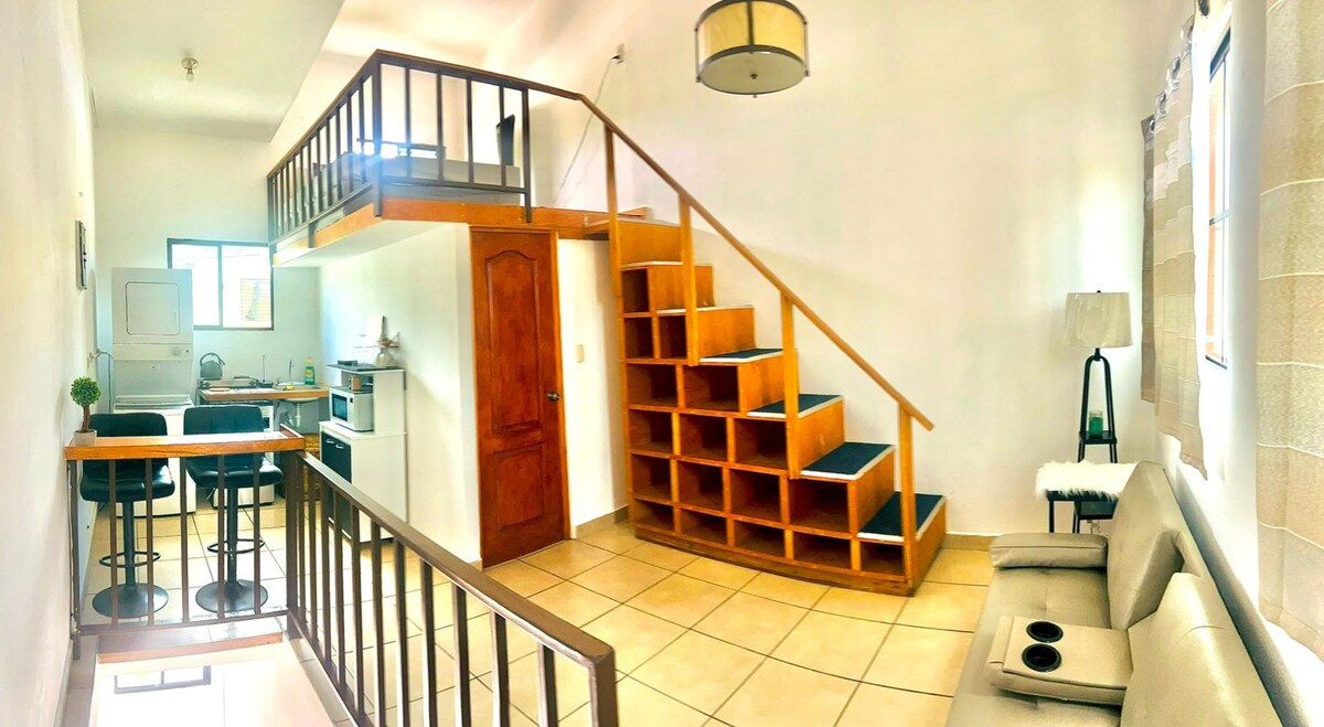 Vaš sodobni dom v Antiguo Cuscatlánu ✨ Bivajte v elegantnem enosobnem stanovanju v 11. nadstropju, ki ponuja osupljiv razgled na San Salvador. Idealno za poslovna potovanja, daljša bivanja ali varno in udobno izhodišče med raziskovanjem mesta. Vključuje: ✔️ Velika zakonska postelja iz spominske pene, zatemnitvene zavese, miza in stol za delo na daljavo. ✔️ Sodobna dnevna soba s 65-palčno pametno televizijo, Alexo in raztegljivim kavčem (1,70 m). ✔️ Popolnoma opremljena kuhinja ✔️ Zasebni balkon s panoramskim razgledom ✔️ Parkiranje in hitra povezava Wi-Fi