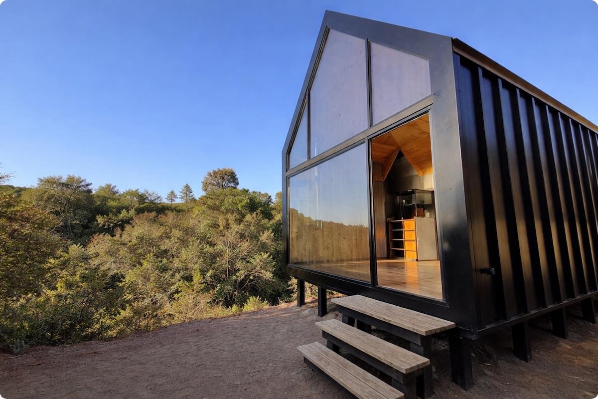 Naša mini-hiška vam ponuja edinstveno doživetje, ki združuje preprostost, mir in povezanost z naravo🌿 💚Terasa s spektakularnim razgledom 💆♀️Masažna kad za popolno sprostitev 🔥Žar in štedilnik za zvezdne noči 🌳Potopitev v sredozemski gozd Cerro 🛏️4 osebe ю️Prilagojena pozornost Zavarujte zasebno 🔐stanovanje 7 minut od Lagune de Zapallar. Dostop po makadamski cesti. Prostor popolne tišine in miru, ki vam bo omogočil, da se ponovno povežete s seboj in naravo.