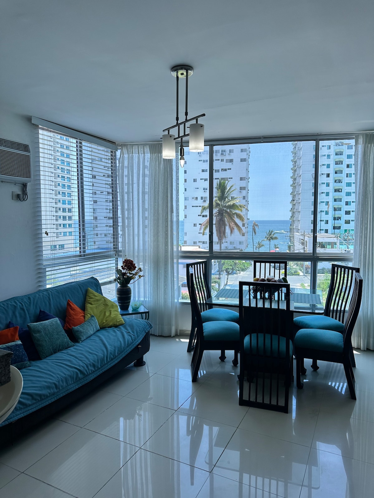 Udobno stanovanje v 7. nadstropju s spektakularnim razgledom na ocean, čudovita plaža, popolnoma opremljeno. Imamo 3 spalnice, 2 kopalnici s toplo vodo, klimatsko napravo, jedilnico, dnevno sobo s kavčem in TV-jem, Wi-Fi, hladilnik, polno kuhinjo, ventilator, balkon s čudovitim pogledom na ocean, 2 bazena za otroke, 1 bazen za odrasle. Smo v sektorju Milina. The condominium is called Torre Oceánica and we are 1 block from the Hosteria el Faro and 4 blocks from the Supermaxi.
