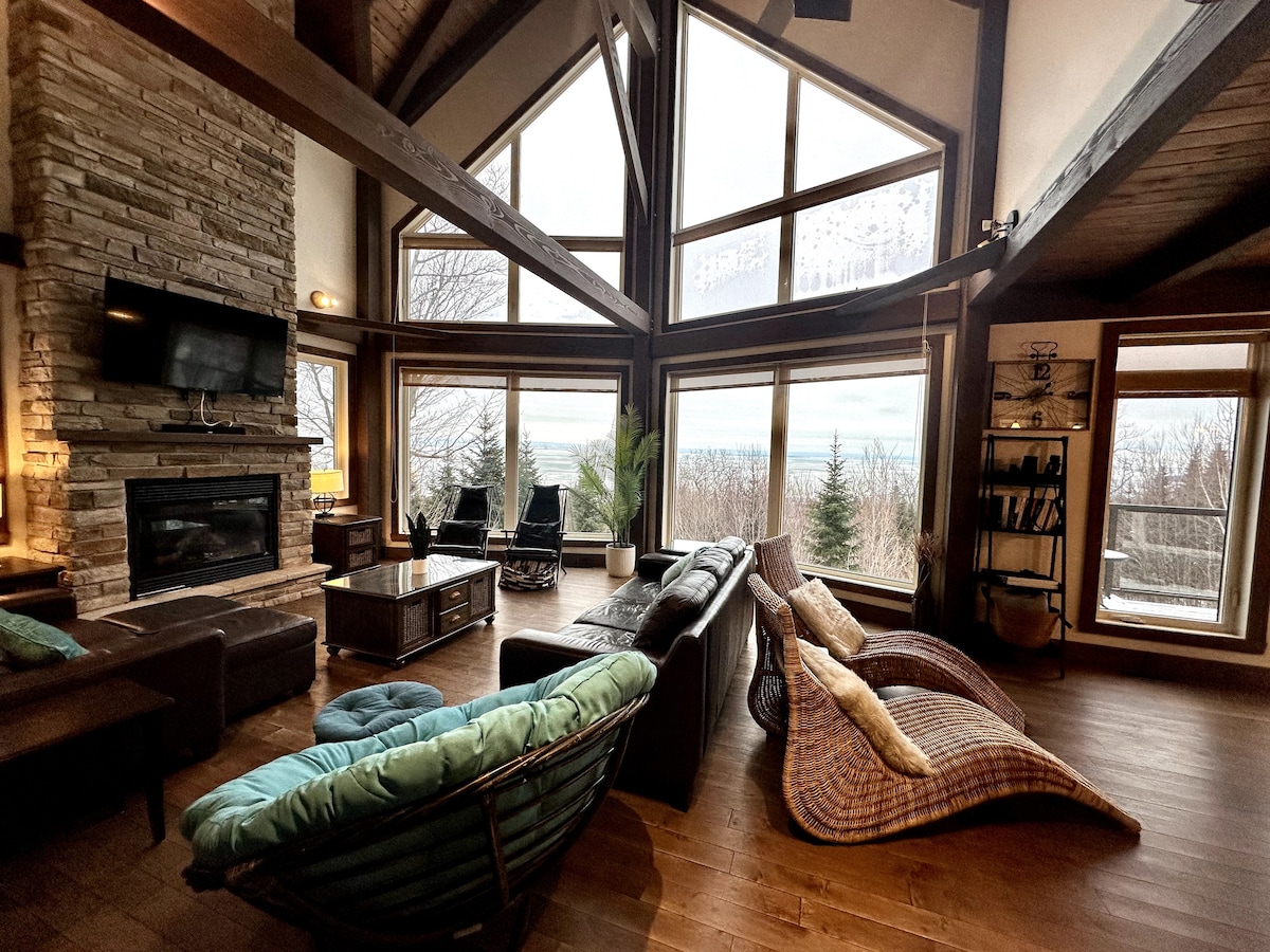 Edinstven planinski dom, kjer se rustikalni čar sreča z eleganco. Uživajte v spektakularnem razgledu na goro Massif in reko, medtem ko uživate v kavi, preden si nadenete smuči za nepozaben dan. Ta prostoren in udoben miren kotiček lahko udobno sprejme do 13 gostov. Njegova odlična lokacija, ki se nahaja med naravo in kulturo, vas postavlja le nekaj minut stran od številnih poti in najbolj priljubljenih znamenitosti Baie-Saint-Paula. Popolno okolje za nepozabna bivanja v vsakem letnem času.