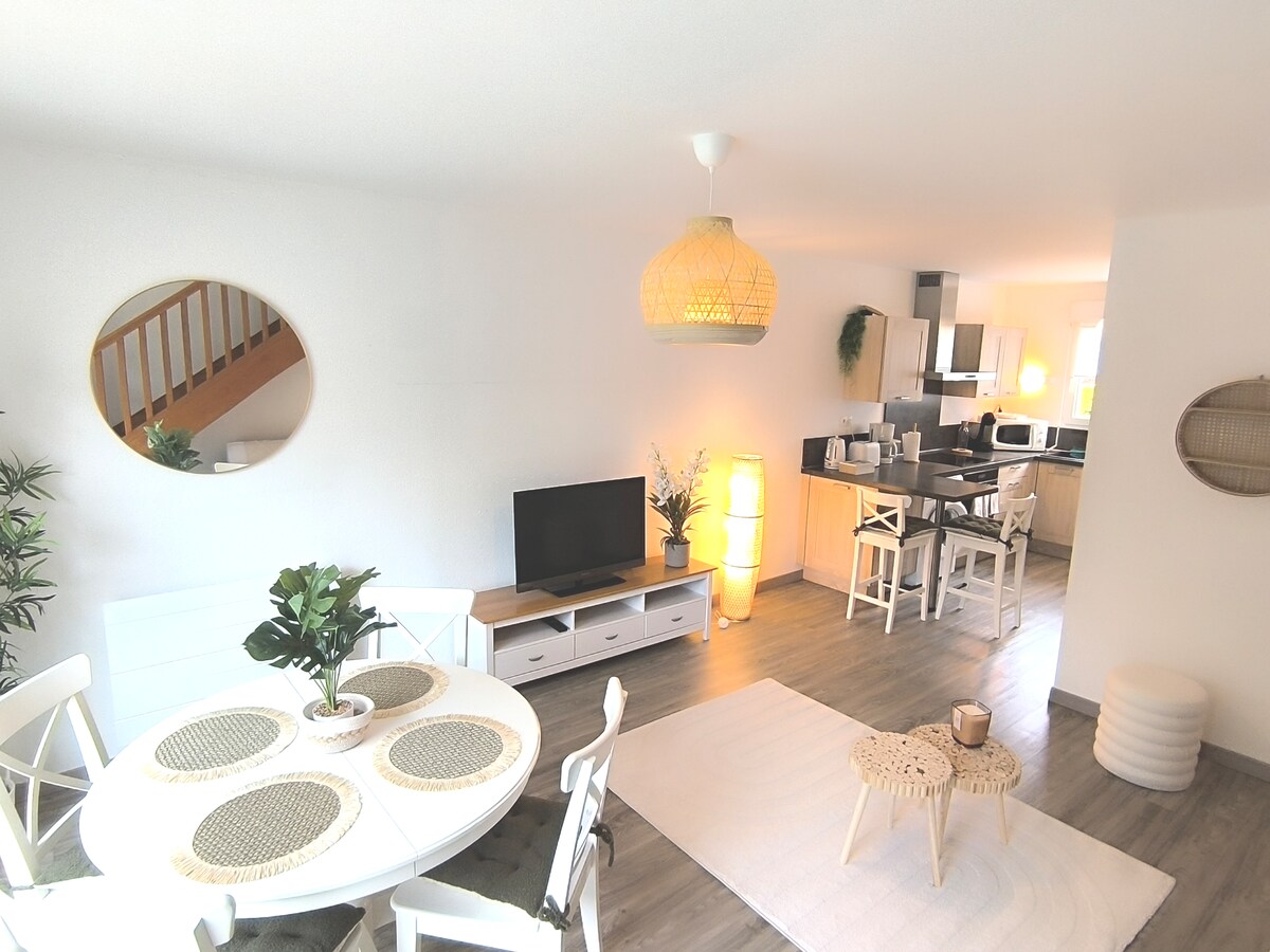 Charmante maison de ville entièrement rénovée, avec terrasse plein sud et jardin clos de murs, au calme dans une petite impasse piétonne. À deux pas de la gare (Paris Montparnasse en 2h15) et à 10 minutes en voiture de la première plage. Idéale pour une halte travail ou un séjour détente, vous profitez d’un environnement paisible tout en restant à proximité immédiate du centre et des transports. La cour sécurisée permet de ranger vos vélos (location à la gare) en toute tranquillité 🚲