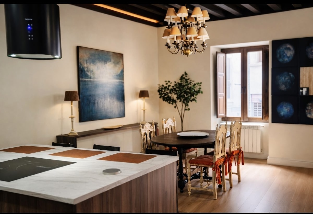 El lujo del espacio en el centro histórico. 108m², techos altos y balcones definen este espacio singular. Junto al palacio de los Lezquinas SXV. Vive la historia con el confort del SXXI Artesonados, maderas y arte original, crean una atmósfera cálida, de paz y elegancia Servicios Premium: Parking gratuito, A/C en verano, Calefacción con asistencia remota, WiFi, Cerradura inteligente, Detector humo & CO Ubicación ideal para visitar Ávila y Murallas a pie, conocer los pueblos y ciudades cercanas
