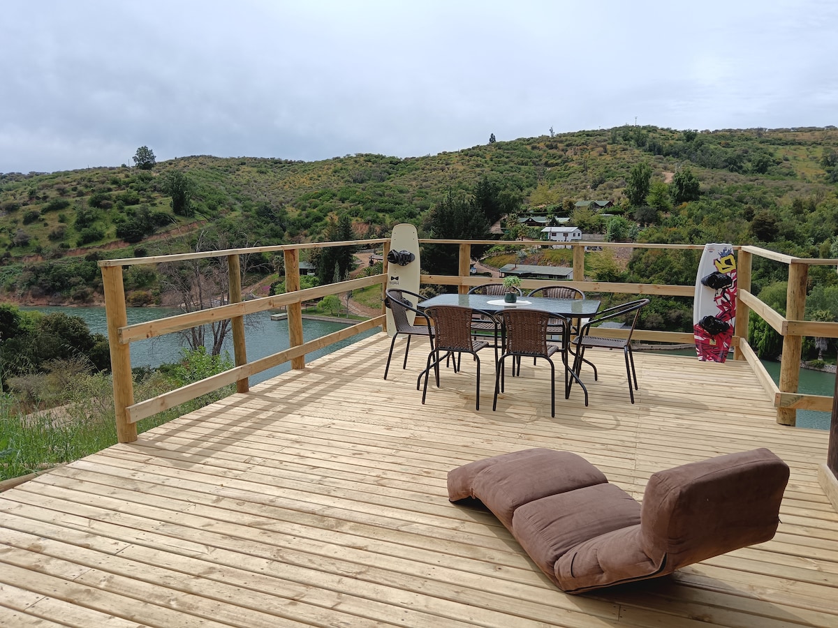 Sodobna koča s čudovitim razgledom na jezero Rapel, miren kraj, idealen za počitek in/ali vodne športe, vodni sektor BREZ cvetja, da se lahko ohladite. Zasnovano za pare in družine z otroki. Opremljena koča, klimatska naprava, ventilatorji, zunanje žaluzije za spanje brez svetlobe ves čas dneva. Dostop do jezera z majhnim srednje zahtevnim trekingom 3 minute. Ima 2 kajaka za brezplačno uporabo.