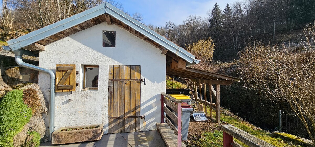 Na robu Mosel in v bližini zelene poti. V vznožju balona Alzacije in dela. Topla hiša za 2 do 4 osebe. Naravno okolje, mirno, tiho, obrnjeno proti goram . Zasebna terasa za čudovite dni... 10 km od Ballon d 'Alsace in Rouge Gazona. Pot vas popelje do roba Mosel, mimo mostu, do katerega dostopate neposredno do zelene poti.