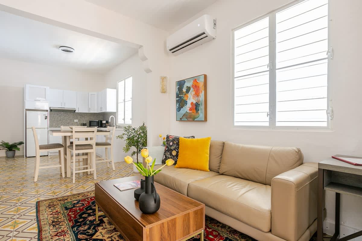Luksuzno stanovanje v osrčju * območja La Placita*. Oddaljenost od najboljšega nočnega življenja v San Juanu, bari, restavracije, trgovine, živila, bankomati. 9 min. vožnje od letališča SJU. Stanovanje je v celoti opremljeno in opremljeno z vsem, kar potrebujete za uživanje v počitnicah. Ena glavna spalnica z zakonsko posteljo in en raztegljiv kavč v dnevnem prostoru. Stanovanje ima grelnik vode, pralni in sušilni stroj , brisače, sušilnik za lase, posteljnino, klimatsko napravo v vseh prostorih 65-palčni HD TV in Wi-Fi .