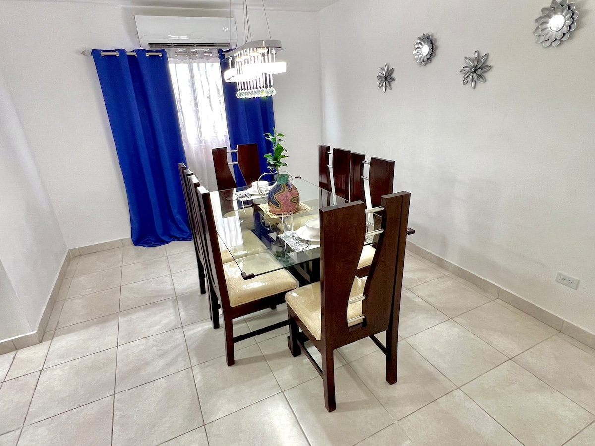 Narava vas čaka na Cerezasu 41, spektakularen razgled na igrišče za golf. Uživajte v mangu in češnjah, ko je sezona. Prostorni 3 BR s klimatsko napravo v spalnicah, 4,5 BA, visoki stropi, jedilnica in dnevna soba, TV z stropnimi ventilatorji v vseh bivalnih prostorih, bazen, terasa in dvorišče, popolnoma opremljena kuhinja in veliko zelenja! Kaj je vključeno: služkinja od 20.30 DO 16.00, parkiranje v sklopu prenočišča. Priprava zajtrka in kosila {Izključuje živila} Priprava večerje je na voljo z doplačilom.