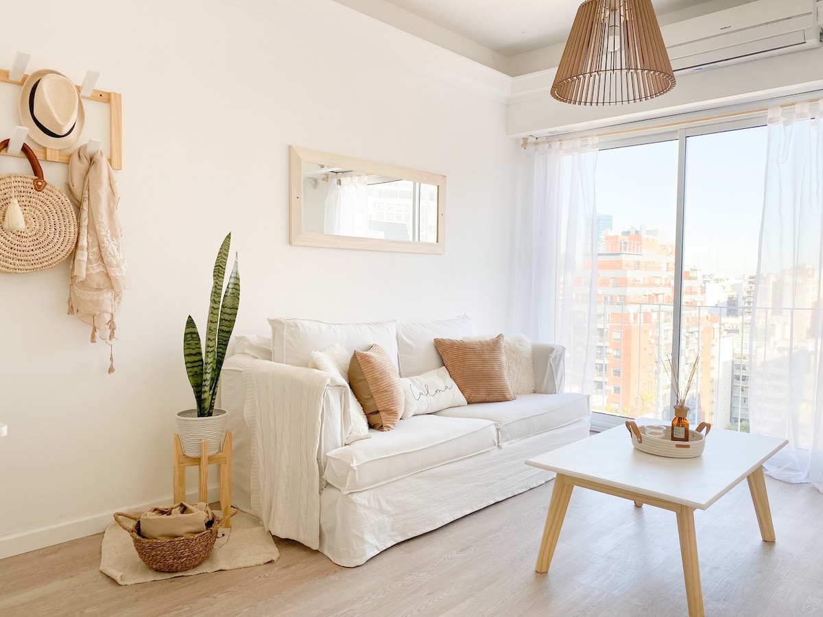 Čudovit studio, zelo svetel in tih v najboljši coni Palerma. Pripravljeni na izjemno bivanje! Nekaj metrov od nakupovalnega središča Los Arcos, najboljših restavracij in čudovitih parkov Palerma. Popolnoma opremljen, ima hiter Wi-Fi, Smart TV 50" 4k, fotelj in polno kuhinjo (mikrovalovna pečica, anafe, pečica, opekač kruha, Nespresso, pripomočki). Idealno za tiste, ki želijo obiskati in spoznati Buenos Aires z najboljšega območja Palerma.