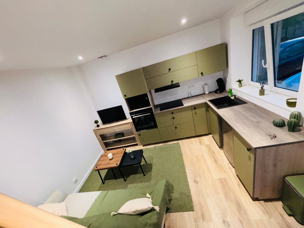 Jolie petit logement situé à deux minutes à pied de tout les commerces du centre (boulangerie, boucherie/charcuterie, tabac, fleuriste, supermarché..& gare routière). A 25 min de la flèche et son magnifique zoo. A 20 min du circuit des 24H du Mans. Cuisine équipé(plaque,hotte, four, micro-ondes, senseo,frigo) Mezzanine avec Lit 140x190, dressing, douche, vasque et wc indépendants. Linge de lit et de bain fourn