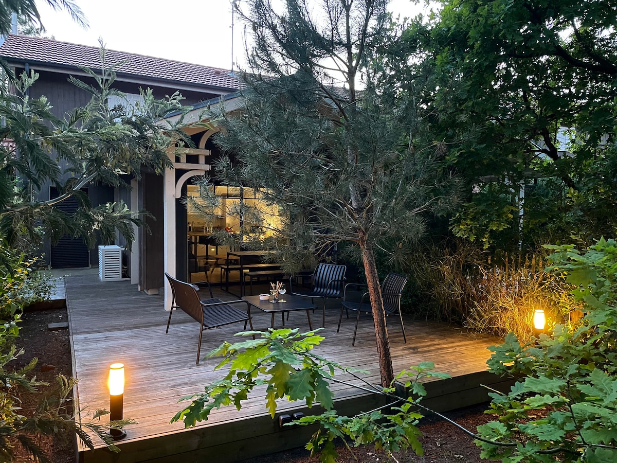 Bienvenue dans ma maison à la Teste de Buch. Vous séjournerez dans une maison arcachonnaise rénovée, avec une extension moderne. Elle est meublée et équipée avec soin et amour ! En 2026, nouveau parquet, nouveau tapis ☀️ Le jardin, les terrasses et la piscine (fermée en hiver) permettent de profiter de l'extérieur dans un quartier calme et résidentiel. Idéalement située dans le centre, le marché, les restaurants et les commerces sont à 5 minutes à pied. La gare est accessible en 15 minutes.