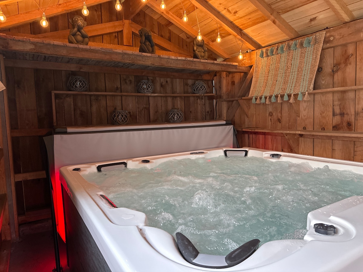 ❤️ Ljubezenska soba z zasebnim spa centrom v bližini Bassin d'Arcachon Uživajte v edinstvenem romantičnem doživetju v dvoje v tej 40 m² veliki sobi ljubezni: zasebni spa, zakonska postelja z ogledalom na stropu, naslanjač tantra, udobna dnevna soba, opremljena kuhinja, balkon, kopalni plašči in zasebno parkirišče. La Cachette se nahaja v Audengeu, v bližini Bassin d'Arcachona, in je idealna za romantični pobeg in ponovno povezovanje v dvoje.