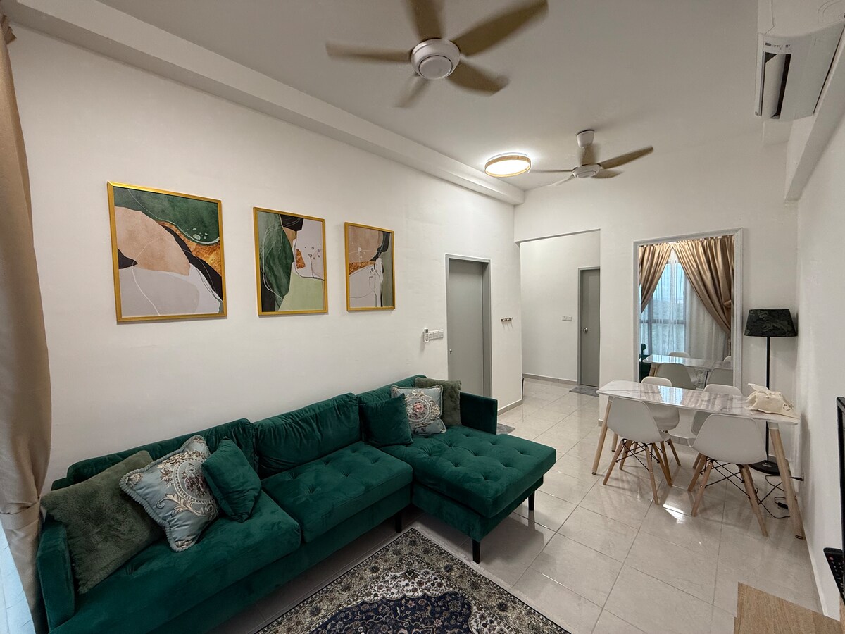 Prenočišče daleč od doma. Nahaja se sredi vse vrste opreme, kot so mošeja Hussain, City Park, Seremban Courthouse in še veliko več. Nahaja se v 7. nadstropju, ob bujnem naravnem zelenju. To je zavarovano in varovano non stop. Pripeljite vso družino v to čudovito bivališče z dovolj prostora za sproščujoče in mirno bivanje. Celoten paket Astro Sport in Netflix sta na voljo , 40 minut vožnje do igrišča za golf Kota Seriemas in 40 minut vožnje do Port Dicksona