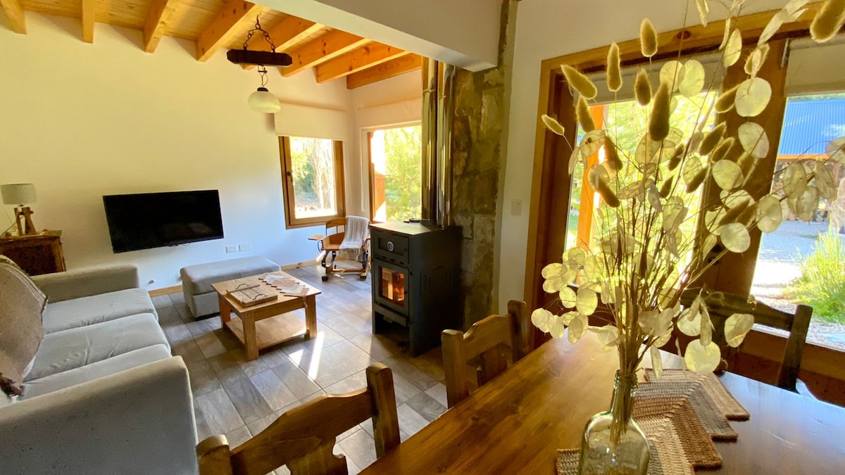 Sprostite se v našem udobnem gorskem domu in vas odpihni čudoviti, neprekinjeni razgledi na neverjetne patagonske pokrajine. Mirno in edinstveno prenočišče z eno spalnico z zakonsko posteljo in eno sobo z enojnima posteljama z velikimi pogradi - kot nalašč za družino. Uživajte v čudovitih sončnih vzhodih in sončnih zahodih na naši 16-metrski terasi, obdani z naravo, z občasnim vrtincem, ki se vrti nad glavo. Manj kot 10 minut od rute 40 in 20 minut od središča mesta San Martin de los Andes.