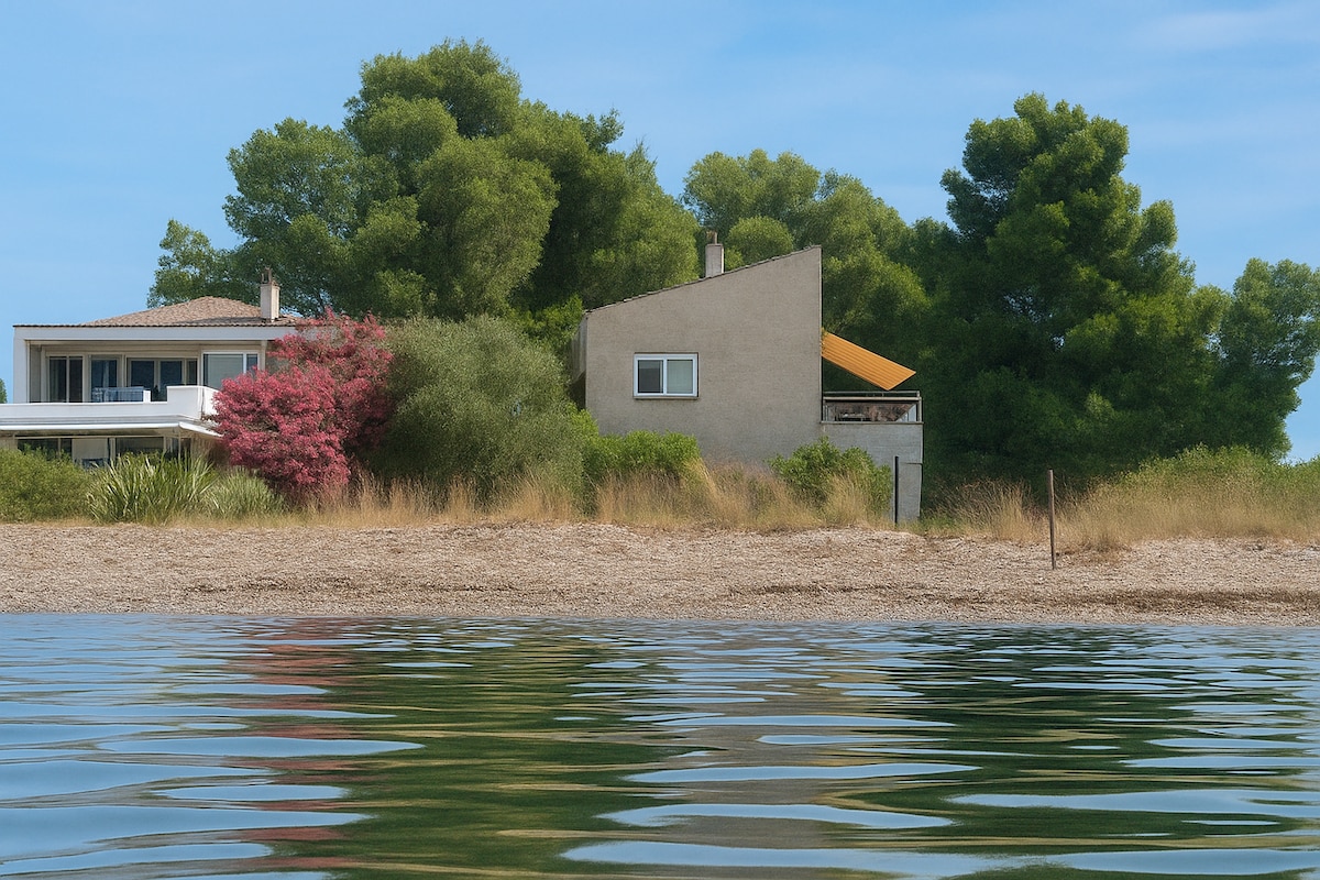 Please also check "Love House" and "Love Nest" Houses for availability. House is on the beach. This place is good for couples, solo adventurers, LGBTQ+ firiendly, business travelers and pet firendly. You will wake, eat, live, sleep, dream on the beach! Place is unique, it is like living on a Yacht with the luxury of a house. It is an Authentic Greek Fisherman's House, used to be an Inn and a family house later on. Now it is divided in three separate houses, sharing the same beach.