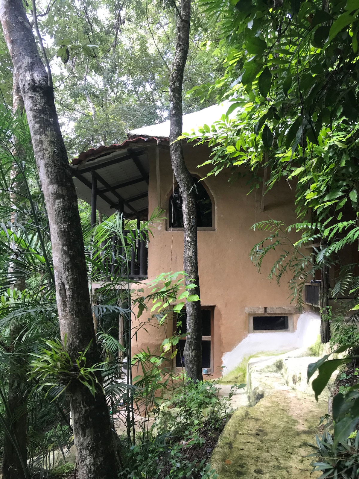 Cob House located in the midst of a small jungle