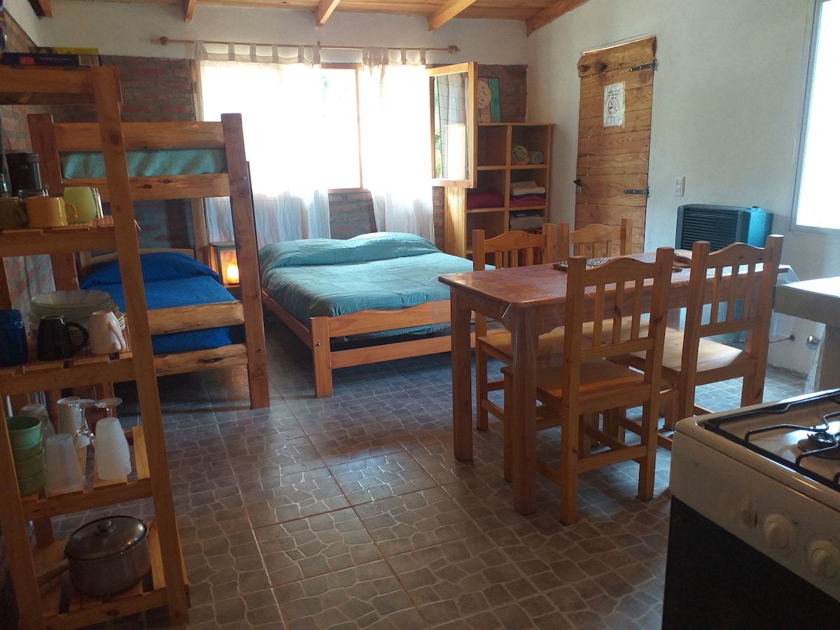 Monoambiente muy lindo, en barrio tranquilo, a pocos minutos del centro. Y a dos cuadras del Rio Quenquemtreu. Cuenta con una cama matrimonial, una cama simple tradicional. La cocina esta equipada con horno a gas, heladera, hollas y sartenes; platos vasos y cubiertos. El baño cuenta con una pequeña ventana de abrir y un cómodo espacio de ducha con muy buena presión de agua y buena temperatura. Con el servicio de alquiler, se darán jabones, toallas, toallones y sabanas.