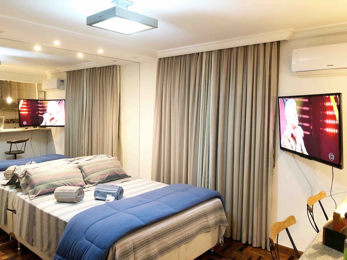 Dobrodošli v privilegiranem predelu Brazilije! Soba ima kavč, stojalo, TV, Wi-Fi in delovno mizo. V spalnici je zakonska postelja, vgrajena omara in klimatska naprava. V kuhinjski mizi, stoli, omarice, minibar , mikrovalovna pečica, pečica, štedilnik, mešalnik, opekač kruha, aparat za sendviče, aparat za kavo in kuhinjski pripomočki (posoda, jedilni pribor, kozarci, lonci). Kopalnica ima škatlo za bliskanje in omaro. Ima tudi rezervoar in vrv za sušenje perila. Pokrita garaža.