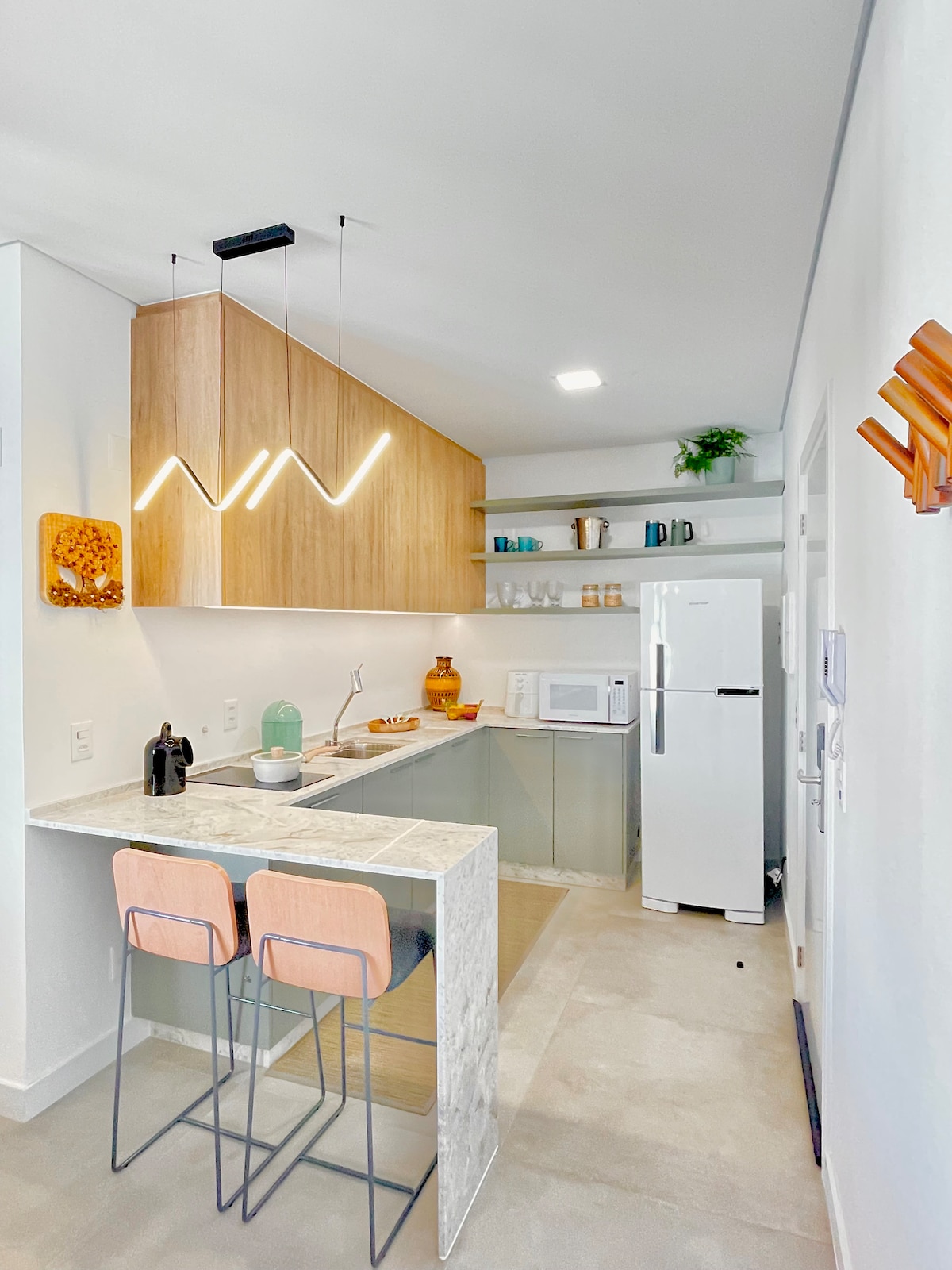 Doživite popolno ravnovesje med oblikovanjem, udobjem in praktičnostjo v Studio Balaena, v ikoničnem prvem kondominiju, na SC-401. Uživajte v bazenu na strehi z osupljivimi razgledi, telovadite v telovadnici Reebok, delajte v skupnem delovnem prostoru in računajte na pralnico OMO prek aplikacije. Garsonjera združuje zakonsko posteljo, eleganten dekor in popolnoma opremljeno kuhinjo – prefinjen umik za tiste, ki iščejo navdih, produktivnost in dobro počutje na najboljši lokaciji v Florianópolisu.