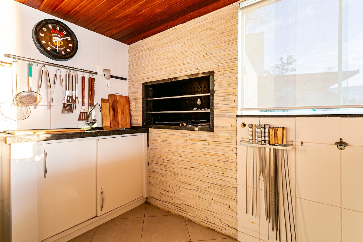 O chalé é totalmente equipado para uma estadia confortável e inesquecível: Quarto • Quarto aconchegante com sacada e vista para o pôr do sol Sala • Sofá confortável para relaxar depois da praia • Smart TV • Ar-condicionado Cozinha completa • Utensílios para preparar refeições completas Banheiro • Chuveiro com aquecimento a gás Relaxamento • Banheira de hidromassagem para momentos de descanso a dois À noite, o clima é silencioso com céu estrelado e a brisa suave vinda do mar.