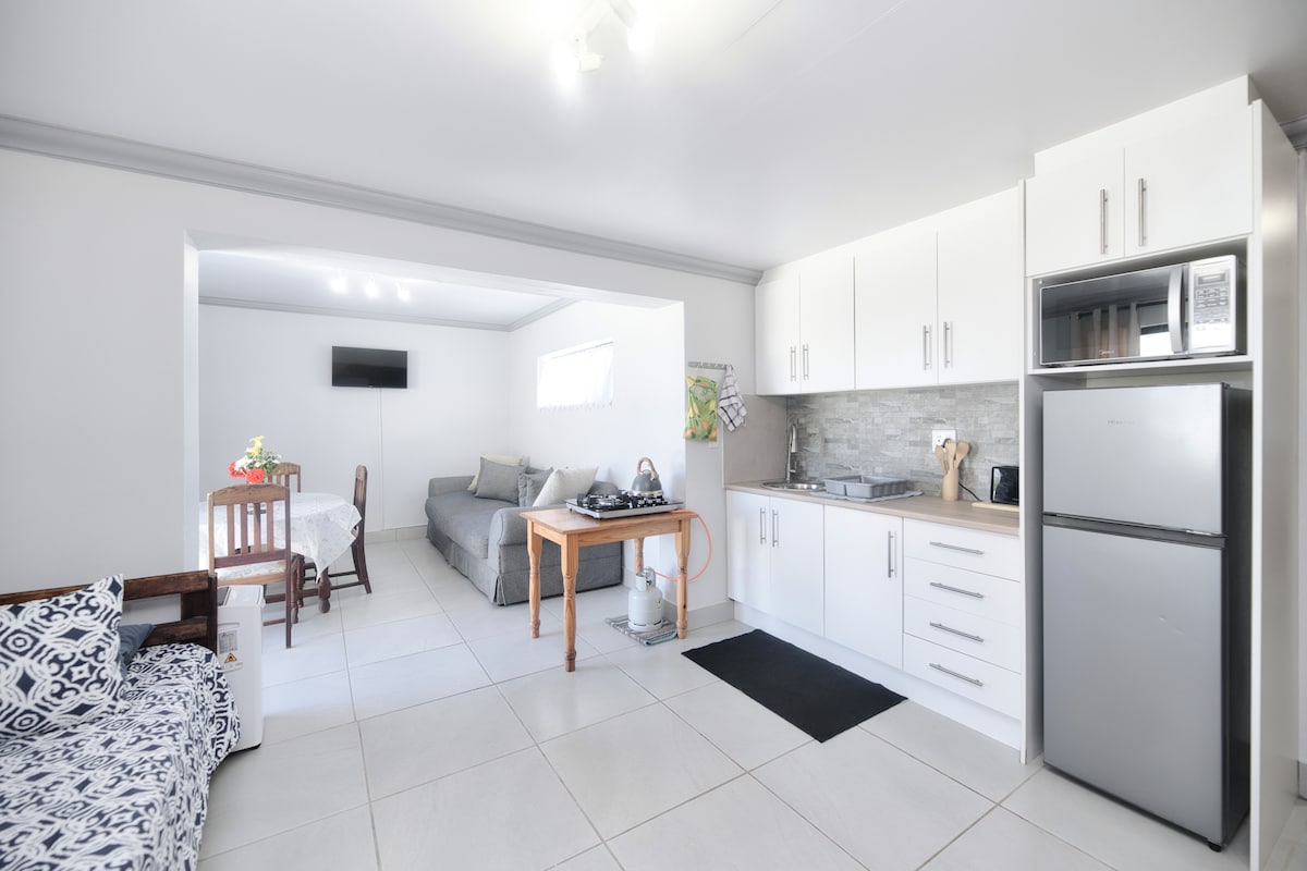 Sprostite se v tem mirnem, elegantnem prostoru in uživajte v čudovitem pogledu na ocean. To dvosobno, samostojno stanovanje se ponaša s čudovitim razgledom. Popolnoma opremljen z vsem, kar potrebujete, da bo vaše bivanje udobno: pametna televizija, DSTV, neomejen Wi-Fi, pralni sušilni stroj, pečica, štedilnik in sončna energija. Vsaka spalnica ima kopalnico s prho, umivalnikom in straniščem. Veliko dvorišče je zasnovano z jedilnico na prostem v mislih. Veselimo se, da vas bomo lahko sprejeli.