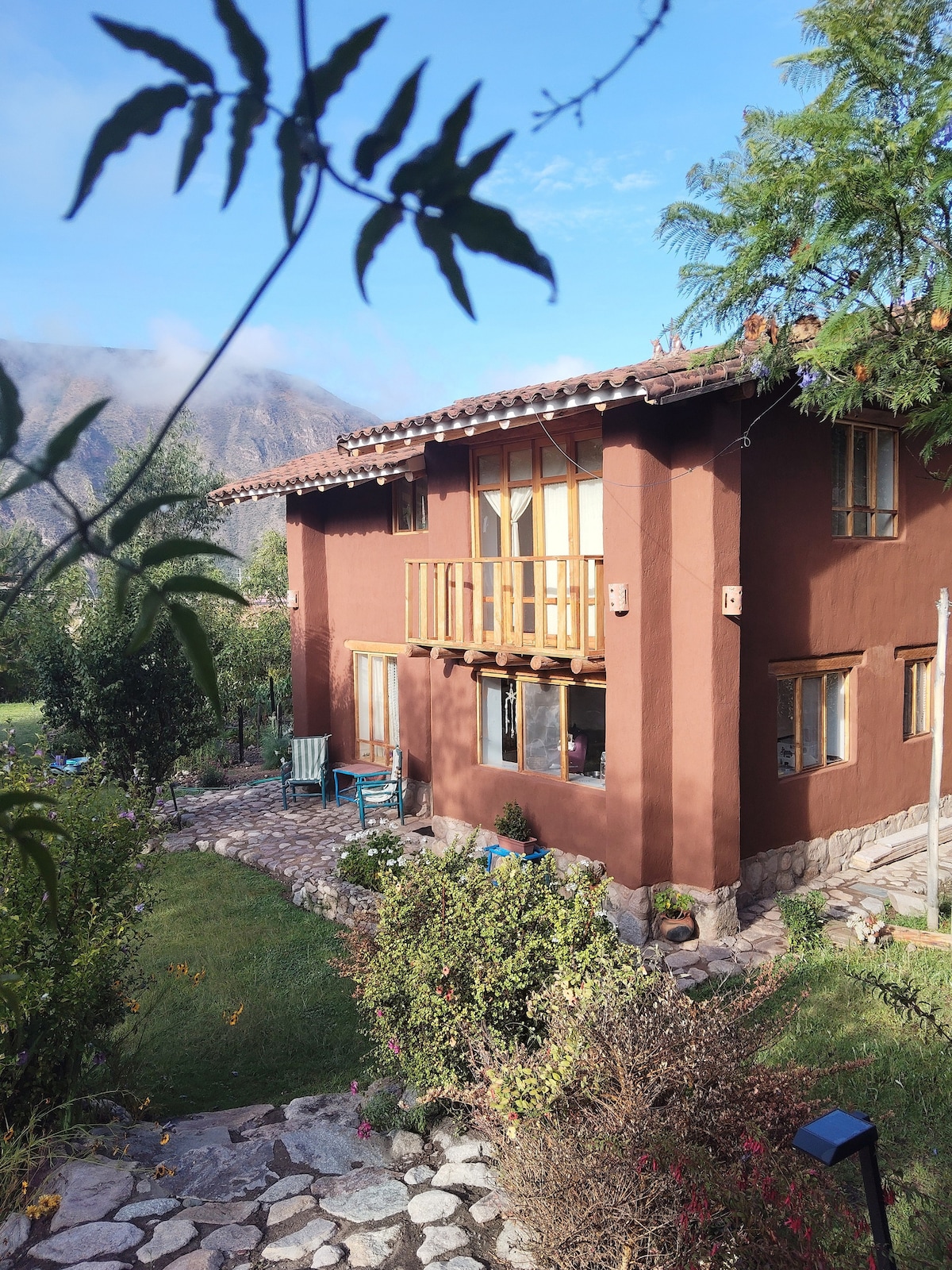 Sprostite se in uživajte v pomlajevalni energiji Svete doline. Uporabite svoj zasebni vrt ali poiščite potok, sprehod po orhidejah, ognjišče in bazen. Udobno 3-posteljno hiško na deželi lahko najamete z lastnim dodatnim apartmajem za goste ali bolj popolnim / neodvisnim studiem (naveden ločeno) za 2 osebi, obe pa sedita na zemljišču našega čudovitega andskega prenočišča. Povezava za studio je : airbnb.com/rooms/6511144