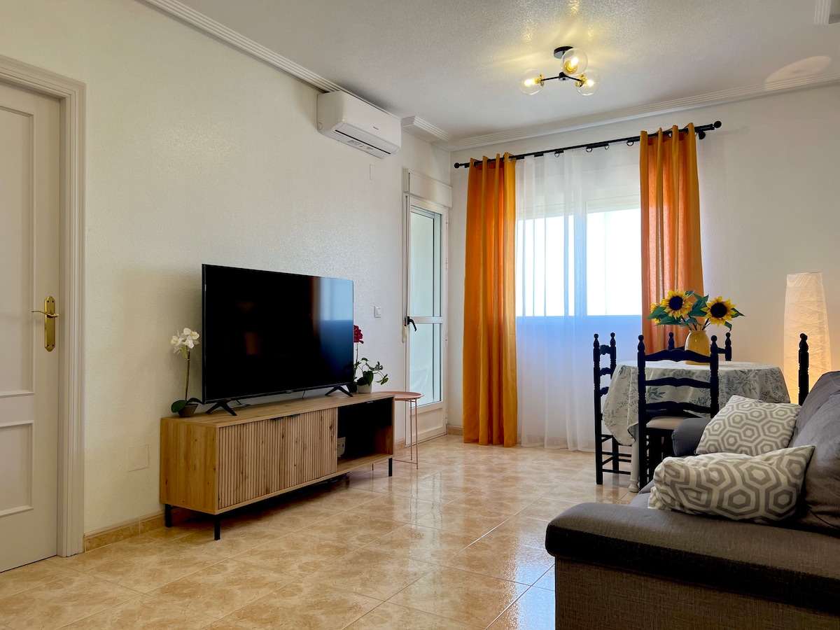 Enosobno stanovanje 3 min hoje do morja (350 m) V kompleksu z bazenom (odprto od junija do septembra). Na voljo je brezplačno parkiranje na naslednjem parkirišču. Lahko se dogovorite za prevoz z letališča Alicante. WI-FI, klimatska naprava, velika in udobna POSTELJA 160 x 200 cm. Balkon s pogledom na bazen. Hiša se nahaja 2 minuti od avtobusne postaje , največje Mercadone v Evropi, 2 min. Veliko število trgovin, restavracij in barov je odprto skozi vse leto.