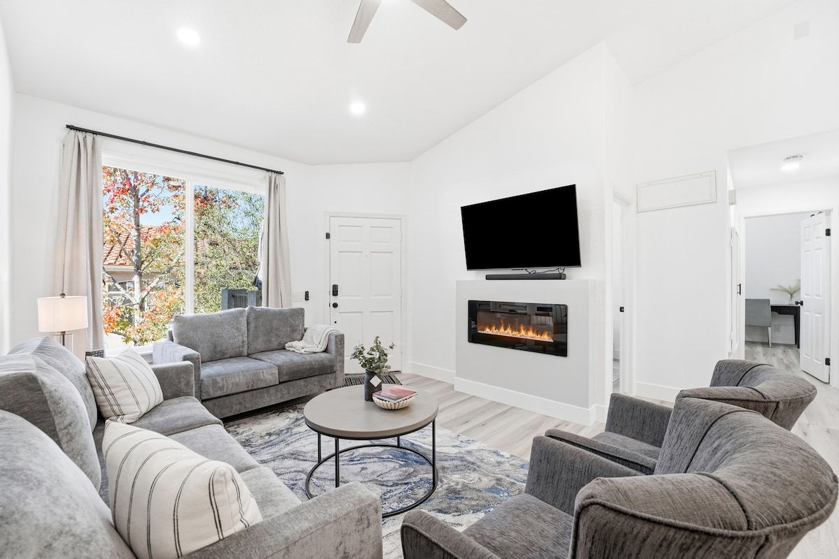 To prenočišče ponuja podjetje Fresh Advantage Homes, ki ga vodi predsednik Sandy Leger (lastnik tega prenočišča) z več kot 700 popolnimi mnenji o gostiteljih in akreditacijo urada za boljše poslovanje (BBB). Prefinjena mestna hiša se ponaša s udobno dnevno sobo s kaminom, butičnim pohištvom in dekorjem ter dostopom do številnih udobja, vključno z zunanjim bazenom, spajem, parkom, otroškim igriščem in rekreacijskimi objekti. Parkiranje je v vaši zasebni garaži. Odlična novica, bazen in spa so zdaj popolnoma odprti!