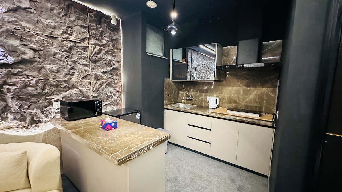 Dobrodošli v prenočiščih Mirhaa Homes, kjer se boste počutili kot doma, tudi če ste tukaj samo nekaj dni. Doživite razkošno, mirno in prostorno enosobno stanovanje, ki se nahaja v nakupovalnem središču Gold Crest Mall Dha Phase 4 Lahore. Udobna spalnica s pogledom na balkon, dobro opremljena kuhinja, popoln sodoben salon in elegantno stranišče. Popolna mešanica udobja in udobja. Odločeni smo, da bo vaše bivanje vsakič nepozabno. Torej, kaj je s čakanjem, rezervirajte svoje stanovanje ZDAJ