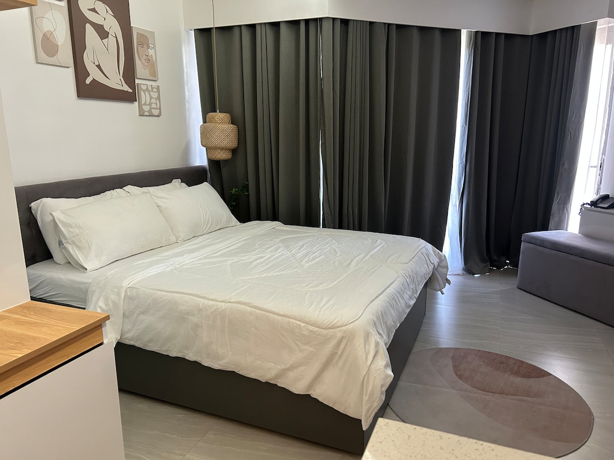 Dobrodošli v svojem drugem domu v osrčju Cebuja! Ta popolnoma opremljena garsonjera se nahaja v najboljšem življenjskem slogu in mestni destinaciji Cebu IT Park-Cebu. Uživajte v dostopu do bazenov, hitrega interneta/Wi-Fi-ja in pametnega televizorja z Netflixom. Enota ima udobno posteljo, čisto posteljnino in brisače ter popolnoma opremljeno kuhinjo in jedilnico. Všeč vam bo tudi priročnost bližine Sugbo Mercada, nakupovalnega središča Ayala, pralnic, trgovin, bankomatov, plačljivih parkirnih mest in še več.