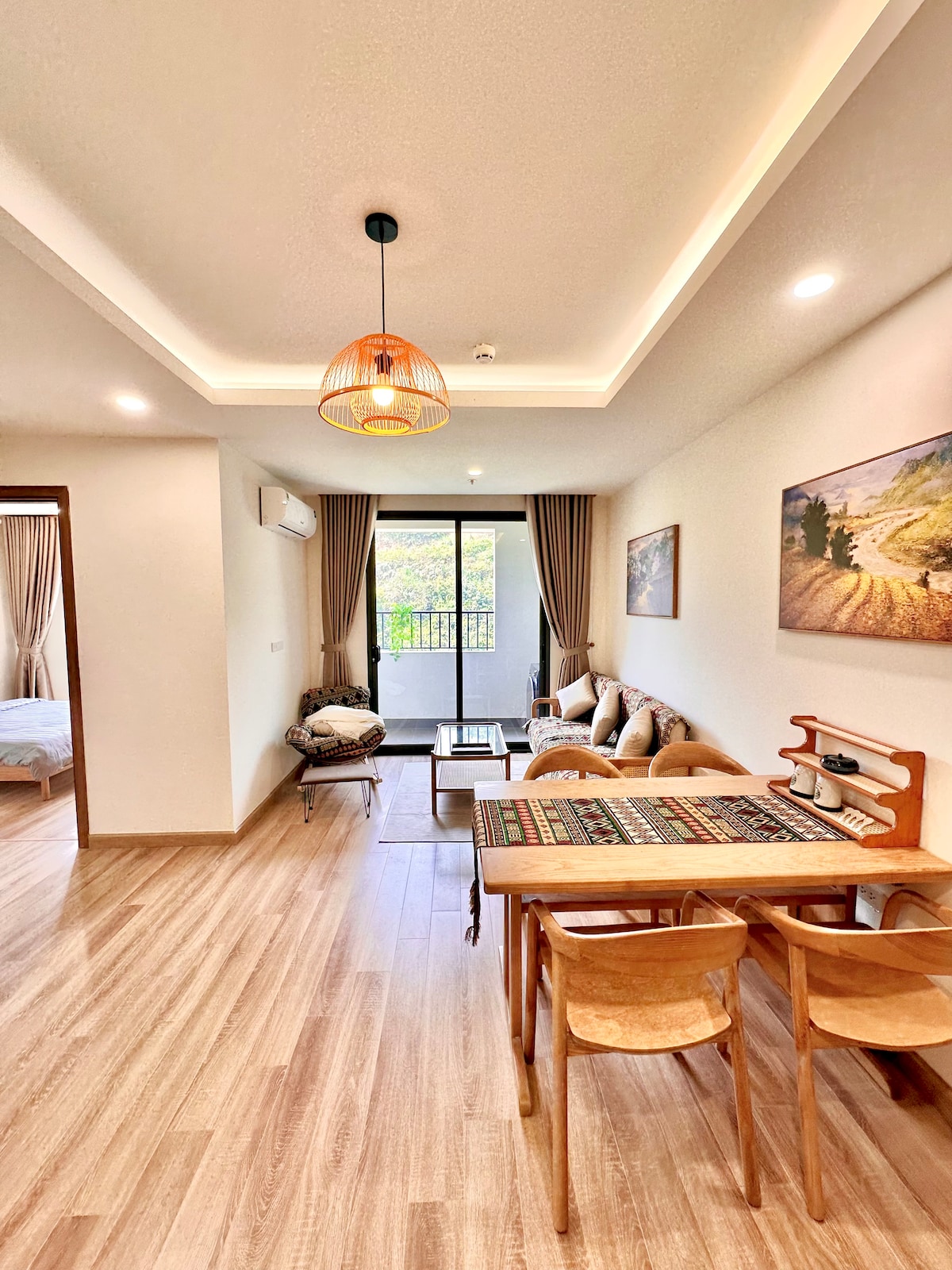 MinT Apartment Sapa is a light-filled, modern home in the clouds with open mountain views. Designed to feel warm and welcoming, the apartment features a spacious living room, a fully equipped kitchen, a large dining area, 4 bedrooms and 5 private bathrooms. Located at Irista Sapa Residence, MinT is perfect for slowing down, waking up to the morning mist, and enjoying peaceful moments like staying in your own mountain home.