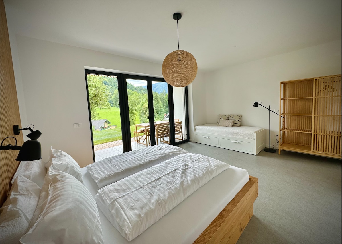 Apartment Chilly is situated in a peaceful area Mlino, 800m/10min walk to Lake Bled. Apartment is all new, cozy and warm. You will have unique view on the mountains from the bedroom and terrace. On the garden you will have your own private hot tube and infra red sauna. Hot tube can be used all year between 10- 22h. Evenings here are magical because of beautiful sunsets and sounds of nature. Our place is good for couples, friends, solo adventurers, business travelers, and families (with kids).