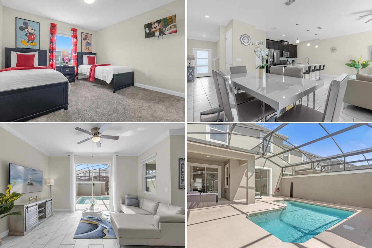 Dobrodošli v našem očarljivem prenočišču za 8 oseb! Doživite brezhibno fuzijo razkošja in udobja v tem prostornem prenočišču! Naša neverjetna lokacija vas loči le nekaj minut stran od Disney Worlda, navdušenja nad studii Universal Studios, vrsto ekskluzivnih možnosti za obedovanje, nakupovanje v outletu in še veliko več! Uživajte v zasebnem prostoru za žar in ustvarite nepozabne družinske trenutke. Ta popolna namestitev ponuja vse, kar potrebujete za sprostitev. *Tematska storitev zajtrka ni obvezna z doplačilom.