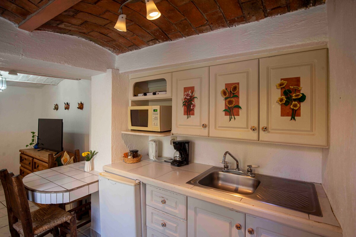Guanajuato je očarljiv studio v osrčju Ajijića. Upoštevajte, da zaradi nizkih stropov suita ni primerna za visoke ljudi in da je postelja dvojne velikosti ter se morda zdi nekoliko majhna za dve odrasli osebi. Le dve ulici od glavnega trga pri cerkvi San Andres in dve ulici od promenade ob jezeru Chapala je kratek sprehod do številnih restavracij, galerij, različnih vrst nakupov in še več. Kot hiša za goste imamo gospodinjo, ki je prisotna od ponedeljka do sobote.