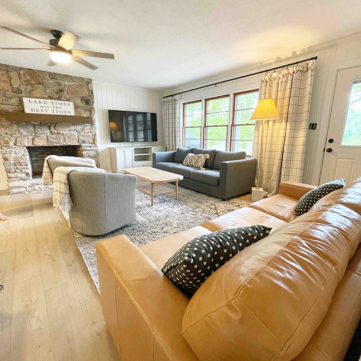 POPOLNOMA NOVA (2022) koča ob jezeru A ob jezeru. Sodobna iz sredine stoletja. Všeč vam bo elegantna hiška na deželi in vse bivanje/igranje na prostem. Blizu se sprehodite do svojega zasebnega pomola (2 čolna) in klančin za čolne v bližini. Nahaja se tik ob jezeru Kerr (tudi otok Buggs). NOVO za leto 2024; POPOLNOMA NOVA KOPALNICA, NOV stabilen internet, betonski pločnik, terasa z ognjiščem, NOVA masažna kad, luči na terasi, plinski žar, zunanja prha. Izpuščene igrače; vagon za prevoz, otroški kajak, kajak za odrasle, deska za veslanje in stoli za plažo.