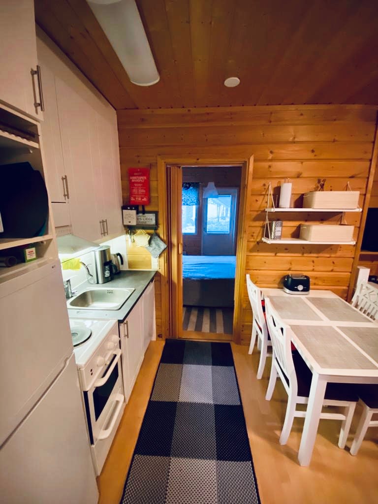 Na odlični lokaciji v središču Saariselke, blizu vseh dejavnosti in storitev, se nahaja udobno in prostorno stanovanje v vrstni hiši, 54 m2 + podstrešje in spalnica v nadstropju z lastnim straniščem. Vse spalnice gledajo na gozd. Smučarske proge in izhodiščne točke za naravne/pohodniške poti so oddaljene 200 metrov. Čiščenje, posteljnina in brisače so vključeni v ceno.