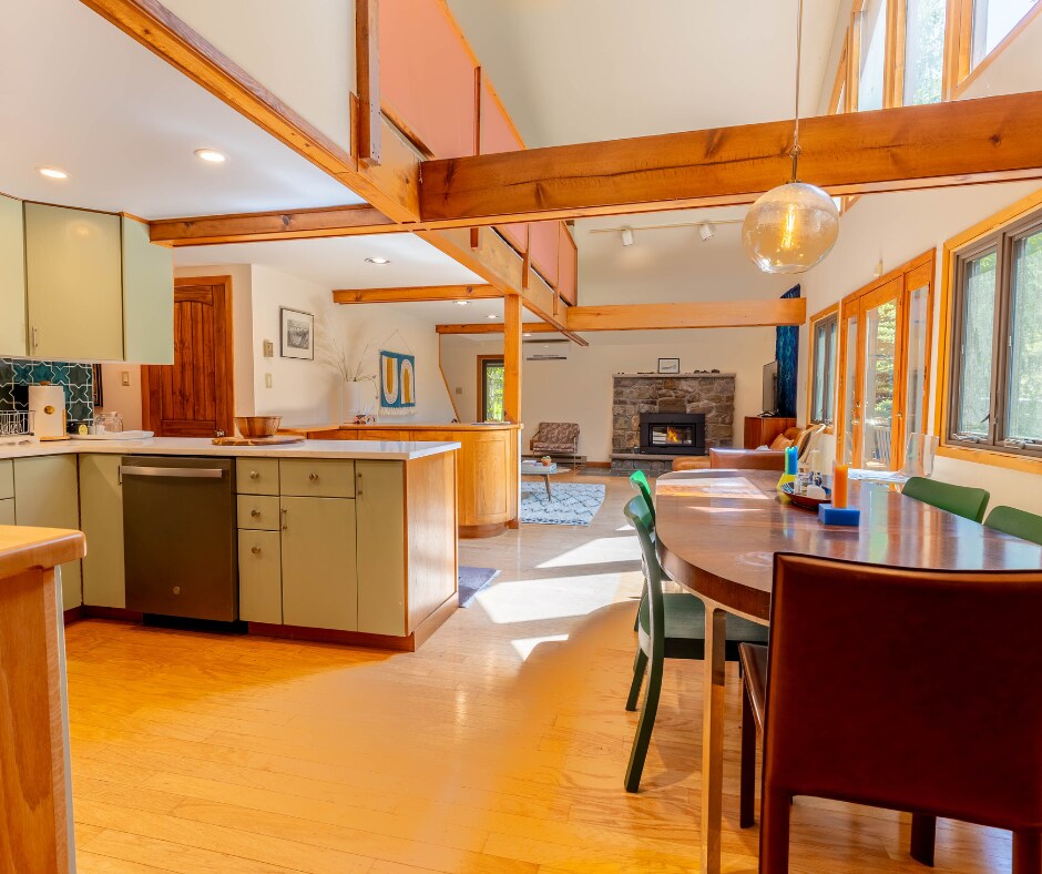 Escape to our A-frame for a cozy getaway! Crystal Lake Cottage: A-frame is a mid century house located in the Pocono Mountains. From New York City or Philadelphia it’s just over a hour and a half drive. Soak in the serene lake view and the quiet in this unique modern A-Frame. The space is perfect for a romantic couple’s getaway or a friends ski weekend. Kick back and relax, take a relaxing kayak ride, read a book, sip your coffee, enjoy time away from your day-to-day and disconnect right here.