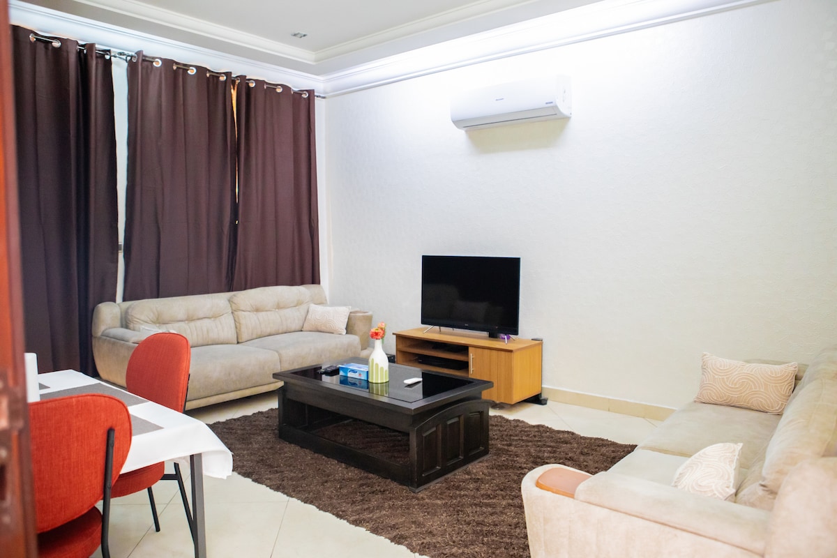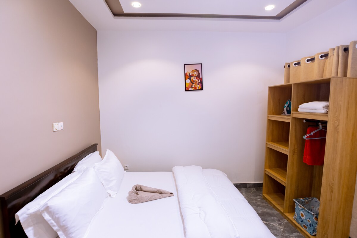 Zelo prostorno in svetlo dvosobno stanovanje, dnevna soba z jedilnico, kopalnica v vsaki spalnici, stranišče za goste, kuhinja in balkon. Zapeljuje s svojim luksuznim poslovnim in počitniškim pristopom. Nahaja se v središču mesta Cotonou Akpakpa na robu tlakovcev nasproti lekarne Segbeya na varnem območju, 15 minut od mednarodnega letališča, 5 minut od plaže, 5 minut od velike tržnice Tokpa. To bivališče je klimatizirano in tiho