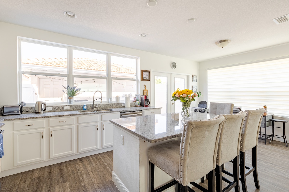 Naša počitniška hiša ob jezeru Nona v Orlandu je le 10 minut stran od letališča in 25 minut od parkov in znamenitosti. Podeželski klub Lake Nona s teniškimi igrišči, telovadnico in igriščem za golf, ki je od hiše oddaljen 1 miljo. Glavna hiša ima 2 spalnici in 1 kopalnico, pralni/sušilni stroj in popolnoma opremljeno kuhinjo. Dvorišče je popolnoma ograjeno. Naše prenočišče je brezhibno čisto z veliko šarma. Namestitev sprejme največ 4 goste. Odredba št. 2018-3. Ni dostopa do garaže. Ni po operaciji.