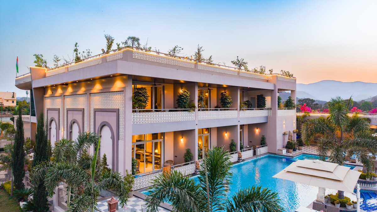 HIŠA PAIRI - 3BHK/BAZEN/HIŠNI LJUBLJENČKI/VRT Hiša Pairi je tradicionalno in elegantno prenočišče 3BHK v osrčju Udaipurja, ki je kot nalašč za družine, ki iščejo udobje in mir. Z bujnim vrtom, majhnim bazenom in popolnoma opremljeno kuhinjo združuje radžastanski šarm s sodobnim bivanjem. Prostorna notranjost je topla in vabljiva, idealna za sprostitev po raziskovanju jezer in palač v Udaipurju. Hiša Pairi je primerna za hišne ljubljenčke in ima parkirišče za dva avtomobila. Ponuja popolno mešanico dediščine, miru in udobja.