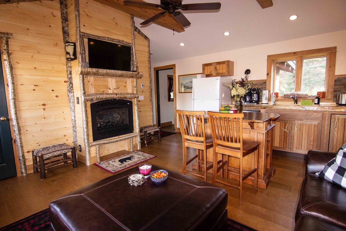 One step into Wildflower Cabin and you know you've made the right choice. The decor is recently remodeled and the detailed custom woodwork offers an invitation for a unique vacation experience. Enjoy the ranch property for outdoor fun like cross country skiing by the moonlight, sledding and enjoying the view from the ski hut. Outdoor fire pits at your cabin as well as the ski hut. Within a mile of the Cascade Ski Center. Famous Cascade Inn and Jack Rabbit Trail right next door!