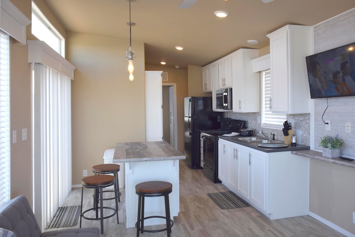 Ta mini-hiška je bila ocenjena kot ena izmed 15 najboljših možnosti nočitve v Pageu, AZ. Ta nenavadna mini-hiška (imenovana tudi »hišica za lutke« ) ima vse, kar potrebujete za udobno bivanje v mirni soseski. Idealno za 2 osebi ; ta prostor vključuje kopalnico z WC-jem, zakonsko posteljo (Queen) in majhne naprave za kuhanje. Na voljo sta tudi pralni in sušilni stroj. Potrudili smo se, da bi čim bolje izkoristili prostor in zagotovili udobje.