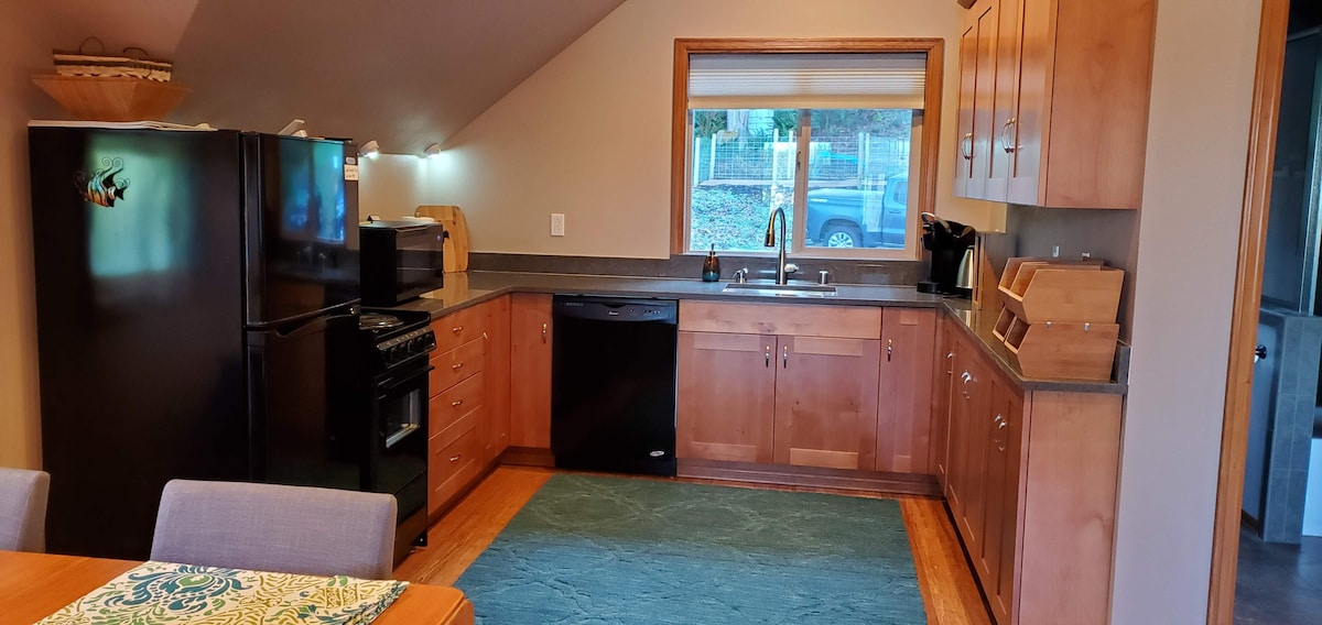 Majhna hiška, ki se skriva na podeželskem območju Forest Glade v Machiasu v okrožju Snohomish. Le 7 minut od prizorišč Machias Meadows in Pretty Bird. Ogrejte se ob peči na drva z dobro knjigo ali pa popečite marshmallow piškote ob zasebnem ognjišču in pijte kavo na verandi, medtem ko mimo vas hodi naš jelen. Ne glede na to, ali ste tukaj zaradi poroke, pustolovščine na prostem ali lenobnih dni ob jezeru, boste bivali v odmaknjenem delu gozda, hkrati pa boste blizu vsega. Sprostite se ob kozarcu vina in uživajte v miru tega spokojnega podeželskega zatočišča.