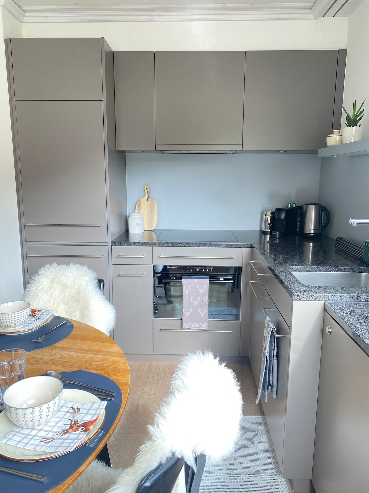 Želite združiti sprostitev v čudoviti gorski naravi z dobro opremljenim sodobnim počitniškim stanovanjem? Morda celo delajte malo vmes - brez težav zaradi stoječih miz, pisarniških stolov in velikih zaslonov. Kuhinja nudi popolno opremo s kozarci za vino St. Moritz, lesene krožnike Engadin, pomivalni stroj, pečico in parno parno ploščo. Hiša ima kolo in smučarsko sobo ter pralnico, vključno s sušilnim strojem in Secomatom. V apartmaju je tudi pralni stroj.