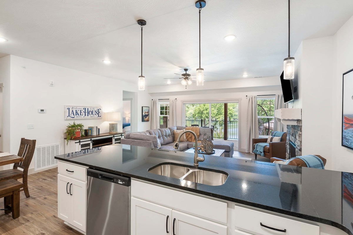 Popolnoma novo sodobno stanovanje z dvema spalnicama, ki ponuja elegantno udobje in osupljiv razgled na jezero Taneycomo v tretjem nadstropju. Zbudite se ob osupljivih sončnih vzhodih nad vodo in uživajte v mirnem zatočišču z veliko prostora za sprostitev. Nahaja se v mirnem okolju, vendar le nekaj minut od najboljših znamenitosti, gledališč, restavracij in trgovin v Bransonu. Idealno za družine, pare ali ribiče, primerno pa je tudi za pse – zato s seboj na nepozaben oddih na jezeru Branson vzemite svoje kosmate prijatelje.