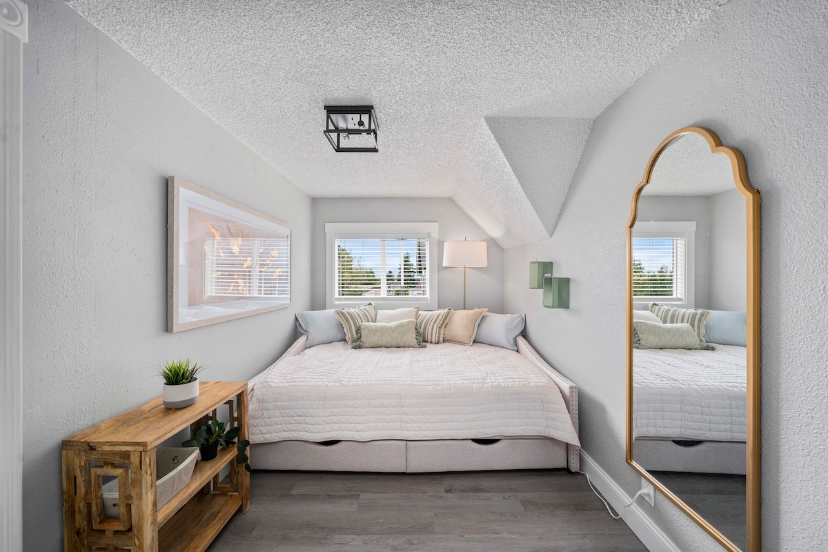 Welcome to the French Library, an all inclusive, stand alone, luxurious King Suite guest cottage, sister unit to The French Country Cottage. Wake up in the shadow of 150+ year old French doors repurposed as a headboard from the Villa Menier in Cannes, France and antique books from the estate of James A. Moore, developer and builder of The Moore Theatre in Seattle…open concept loft has been elegantly restored and remodeled to feature every modern amenity…ask about our long term stay options!