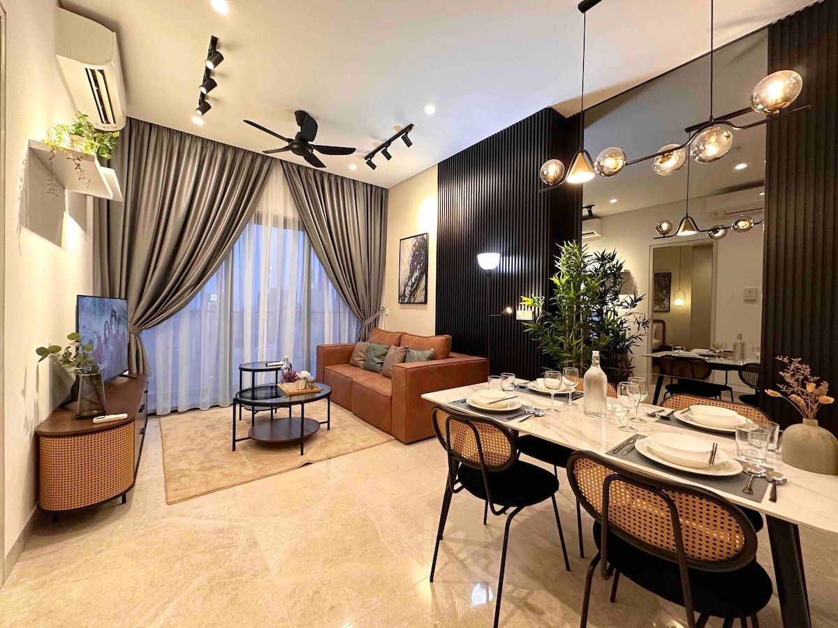 Zakaj bivati v apartmaju Lotus v rezidenci Lucentia - najboljši razgled na KL - čudovito okrašeno z zabavnim duhom - osrednja lokacija -bliz javni prevoz - hitra povezava Wi-Fi -2 televizorja z Netflixom, Apple TV, Prime Video -2 čudovita bazena -družinsko z otroško posteljico in otroškim stolom za hranjenje -telovadnica, biljardna miza, jame za žar, paino - garaža za parkiranje - priporočeno za 4 osebe, največ 5 oseb -LaLaPort Shopping Mall & the WOW entertainment street including grocery, drug store and many restaurants are attached - kino Gsc