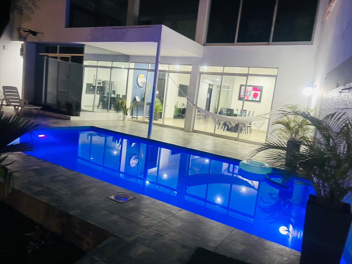 KLUBSKA HIŠA TARAPOTO, nepozabna doživetja, popoln kraj za pobeg od rutine, ta vrtna hiša ponuja neverjetne prostore, bazen, masažno kad, slap, taborni ogenj, peskovnik, otroško hišo, fronton in še več, zgodba se nadaljuje v notranjosti, z veliko kuhinjo, jedilnico in dnevno sobo, sobami z balkonom, do 7 avtomobilov, le 4 minute od trga Tarapoto. Z občutkom podeželske hiše, ki je idealna za družine ali skupine prijateljev. Najmanj 4 osebe in 2 noči. NAJEMITE AVTO ZA 5 OSEB IN ZASEBNE OGLEDE