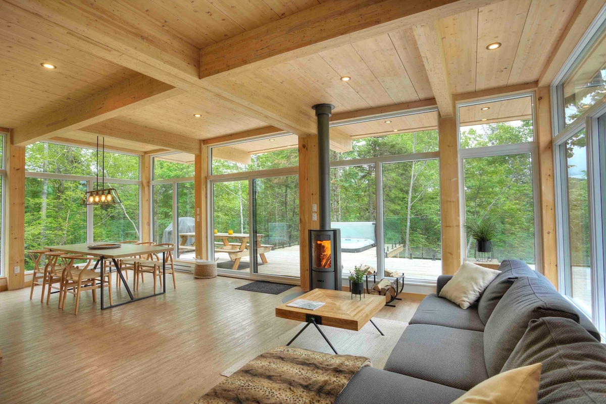 ✨ Chalet Lägom – Expérience scandinave au cœur des Laurentides. Design épuré et lumineux, confort moderne et nature apaisante. À moins de 10 km : épiceries, station-service, descente en kayak, restaurants, plages, sentiers de motoneige, traîneau à chiens, randonnées en montagne, ski de fond, glissades et bien plus encore. ⛷️ À moins de 15 minutes du Mont-Tremblant, les amateurs de glisse seront ravis de dévaler les pistes de l’une des plus belles stations de ski du Québec. 📌 CITQ : 307976