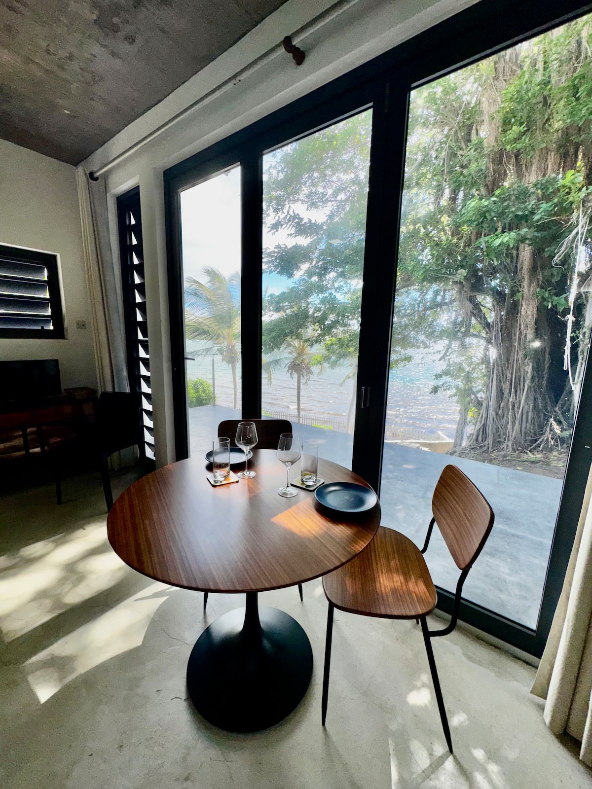 Trgovski paviljon v paviljonu Reef View je zasebna vila s tremi spalnicami/4 kopalnicami s penečim modrim bazenom. Oprema vključuje: kuhinjo/bivalne/jedilne prostore, vetrovne verande, klimatizirane spalnice in veliko kopalnico na prostem s kadjo in prho, poudarjeno z morskimi koralami in starodavnimi fosiliziranimi lignji. Gostje bodo uživali v barviti pokrajini in naravni povezavi s karibskim okoljem na strešnem paviljonu!